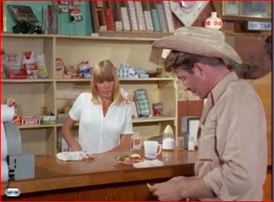 Then, through the miracle of modern film making, we're taken back in time to a small town with a diner and a waitress and a shortage of hats that fit correctly, apparently: