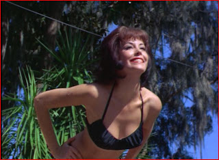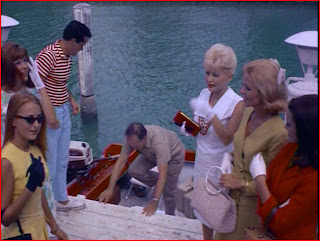 Then a boat arrives on the same dock....a boat filled with young women. Two men are there to greet the women, Dr. Richardson and his assistant, John. One of the young women, Karen, is Dr. Richardson's daughter and she has apparently brought her friends for a visit while they're on break from school.