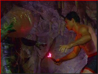 BIG SKEERY DA DERP DERPY JELLYFISH MAN HEAD GUY!!!!!But our heroes Dr. R and John have followed Egon to his lair, and John breaks in with a lit flare for a weapon....and pretty soon we have a showdown between John, Jellyfish Man, and flare...