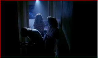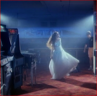 Then Linnea Quigley shows up- turns out she's broken into the bowling alley too.... but she's only robbing the joint.